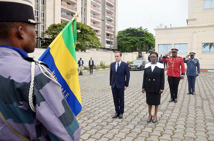 Visite solennelle au ministère de la Défense, elle a enregistré toutes les étapes officielles, dont le passage en revue des troupes, les hymnes nationaux avant l’entretien restreint au cabinet du chef de département de la Défense, comprenant les 5 chefs de corps l’armée gabonaise. S’en est suivie une réunion élargie ponctuée par un échange de cadeaux.
