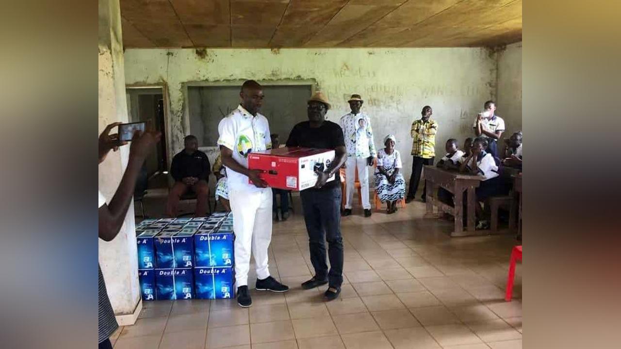 La donation du cadre du PDG était composée essentiellement des ordinateurs complets, des imprimantes (avec cartouche d’encre), des cartons de rames de papier dont les rames de papier spécial/couleur (pour bulletins de notes), des cartons de craies, des paquets de stylos et autres matériel didactique.