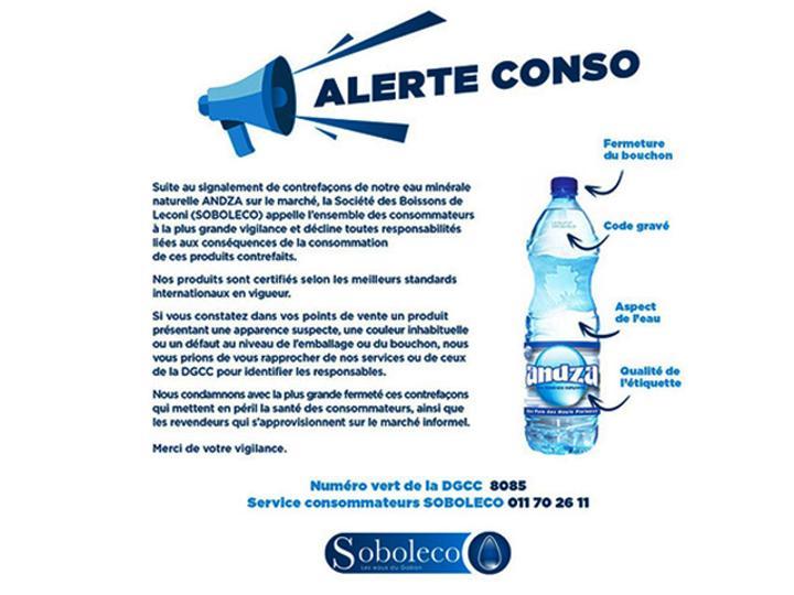 SOBOLECO, la Société des boissons de Leconi, prend des mesures drastiques pour sensibiliser le public à un problème de contrefaçons de son eau minérale naturelle Andza sur le marché. La société exhorte fermement les consommateurs à la vigilance et se dégage de toute responsabilité concernant les conséquences liées à la consommation de produits contrefaits.