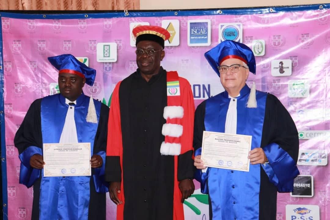 Le président du Groupe EM Gabon Université , Pr Daniel Franck Idiata a procédé mercredi 14 septembre 2022, dans la salle des actes, à la remise des diplômes à deux professionnels à savoir : Lionel David Cohen, Directeur général de l’entreprise Energy Vision, qui a obtenu le Master professionnel en Sciences de gestion, spécialisé en Management des Organisations, et Cédric Audey Ngoudouma, Chef de Service fournisseur à la Direction financière de l’Office des ports et rades du Gabon (OPRAG), ayant obtenu le diplôme de Licence professionnelle en Sciences de gestion, spécialisé en Management financier et comptable.