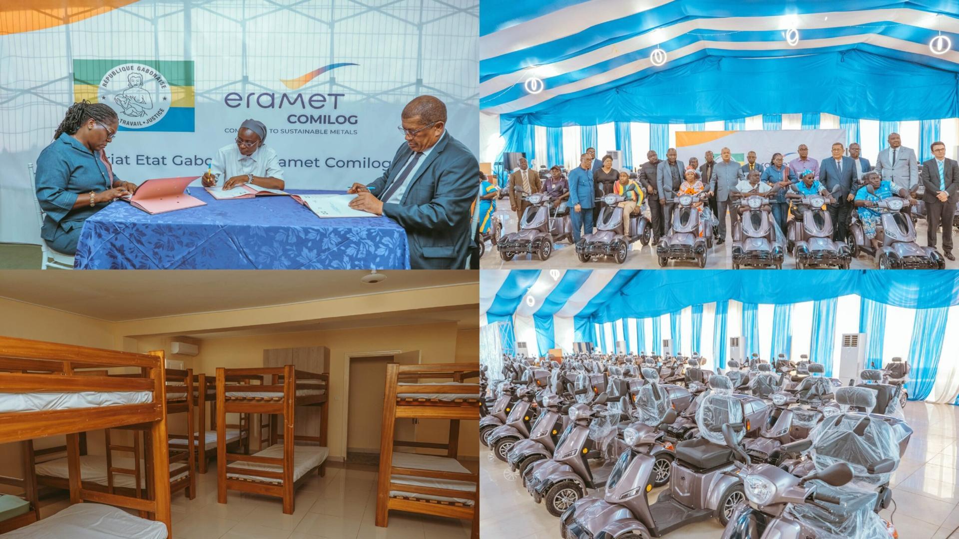 Africa-Press – Gabon. Le ministère des Affaires sociales et Eramet Comilog ont procédé cette semaine à Moanda, dans le département de la Lébombi-Léyou, près de Franceville, province du Haut-Ogooué (sud-est), à la mise en service du Centre d’Accueil Vedruna et à la remise de 50 scooters destinés aux personnes à mobilité réduite, dans le cadre d’actions conjointes en faveur de la protection sociale.