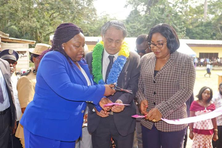 Le ministre de l’Éducation nationale, Camelia Ntoutoume Leclercq, et son ministre délégué Aubierge Sylvie Ngoma, ont réceptionné, le 24 février 2023, le don d’un bâtiment destiné au pré-primaire construit par le gouvernement du Japon au sein de l’école publique de Nfoulayong dans la commune de Ntoum.