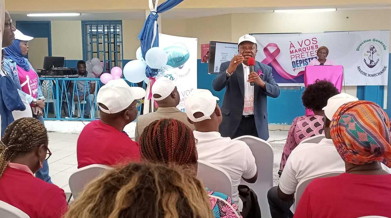 Le Directeur général de la Marine Marchande, Fidèle Angoue Mba a appelé, à l’occasion de la cérémonie du lancement de la campagne ‘’Octobre rose’’ au sein du centre de santé des Gens de Mer sis au Port Môle de Libreville, son personnel à se mobiliser pour se faire dépister massivement des cancers du Sein et du col de l’Utérus.