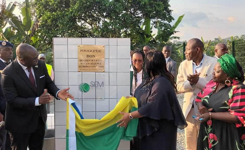 Africa-Press – Gabon. Le Ministre des Mines et de la Géologie, Elvis Ossindji, a, inauguré symboliquement le 03 mars 2023, à Meyang, une de dix (10) stations hydrauliques érigées dans le regroupement des villages « Nfoulayong », localisé dans le 1er arrondissement de la commune de Ntoum (département de Komo Mondah). Cette inauguration à laquelle prenait part, sa collègue chargée de l’Education Nationale, Camélia Ntoutoume – Leclercq, native de la contrée, comptait pour la phase 1 de la mise en œuvre du « Projets 100 forages du Chef de l’Etat » dont la Société Equatoriale des Mines (SEM) est le maître d’ouvrage délégué.