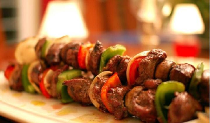 Faites votre marinade en découpant les feuilles d’oignon, puis hachez le persil, écrasez ensuite l’oignon et l’ail. Découpez finement le céleri puis versez le mélange sur la viande préalablement découpée en dés en y ajoutant de la moutarde, du curry, du sel et du poivre blanc. Ajoutez de l’huile, piquez vos brochettes avec les poivrons découpés, laissez ensuite reposer au frais deux à trois heures avant la cuisson. Passez à la grillade en badigeonnant la viande de la marinade tout au long de la grillade pour qu’elle ne soit pas sèche.