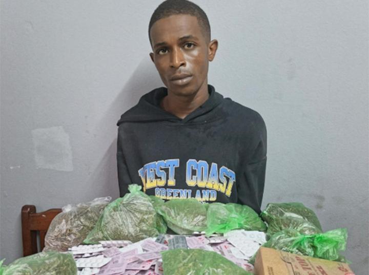 Africa-Press – Gabon. La lutte contre le trafic de stupéfiants vient de marquer un point à Lambaréné. Darly Dessing Djediet, un Gabonais de 27 ans bien connu des services judiciaires, a été une nouvelle fois rattrapé par la patrouille. Interpellé avec une cargaison de drogues évaluée à 6 millions de FCFA, ce sans-emploi retourne à la prison centrale de la «ville du Grand Blanc».