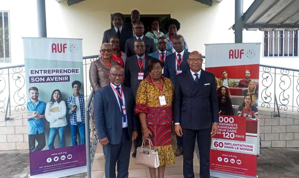 Africa-Press – Gabon. Le bureau sous régional de l’AUF et les membres de la CRESS posant pour la postérité au terme des travaux de la 1ère session tenue au sein de l’UIL le 12 juillet à Essassa (23 km de Libreville)