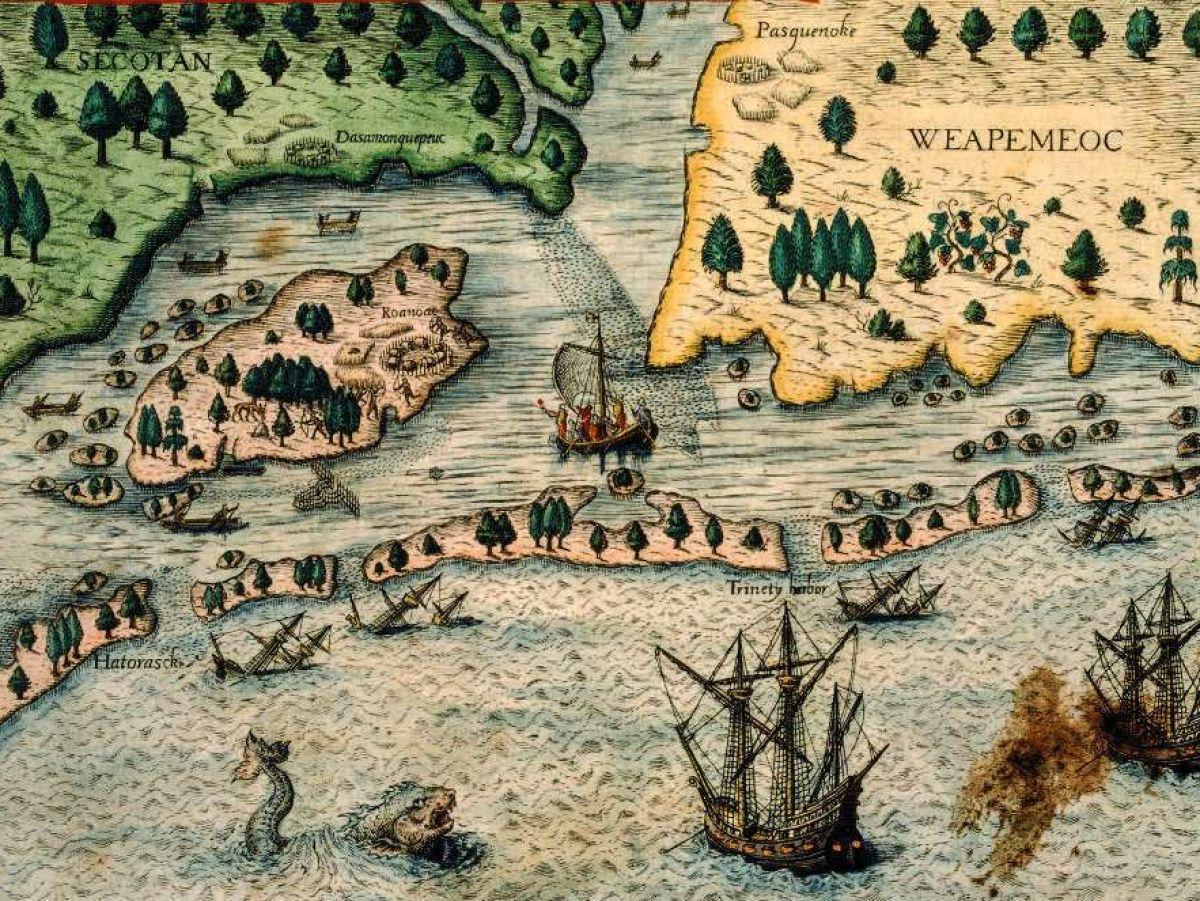 Il est accompagné du dessinateur John White, bien décidé à saisir l’image de l’Amérique, de ses plantes, de ses animaux et de ses habitants. Il trompe l’ennui de la longue traversée en prenant des notes sur la technologie des cordages et des voiles ainsi que sur le vocabulaire imagé des marins. Arrivé sur l’île de Roanoke, Thomas Harriot observe les habitudes des Algonquins et s’engage dans la composition d’un dictionnaire en phonétique pour échanger avec eux. Un an plus tard, il profite du passage de la flotte de sir Francis Drake pour revenir à Londres, laissant la colonie à un triste destin puisqu’elle disparaîtra après l’hiver suivant.