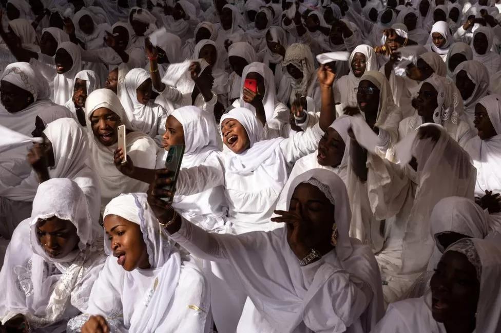 Worshippers belonging to Senegal’s Layene Muslim brotherhood join anniversary celebrations in Dakar on Wednesday.