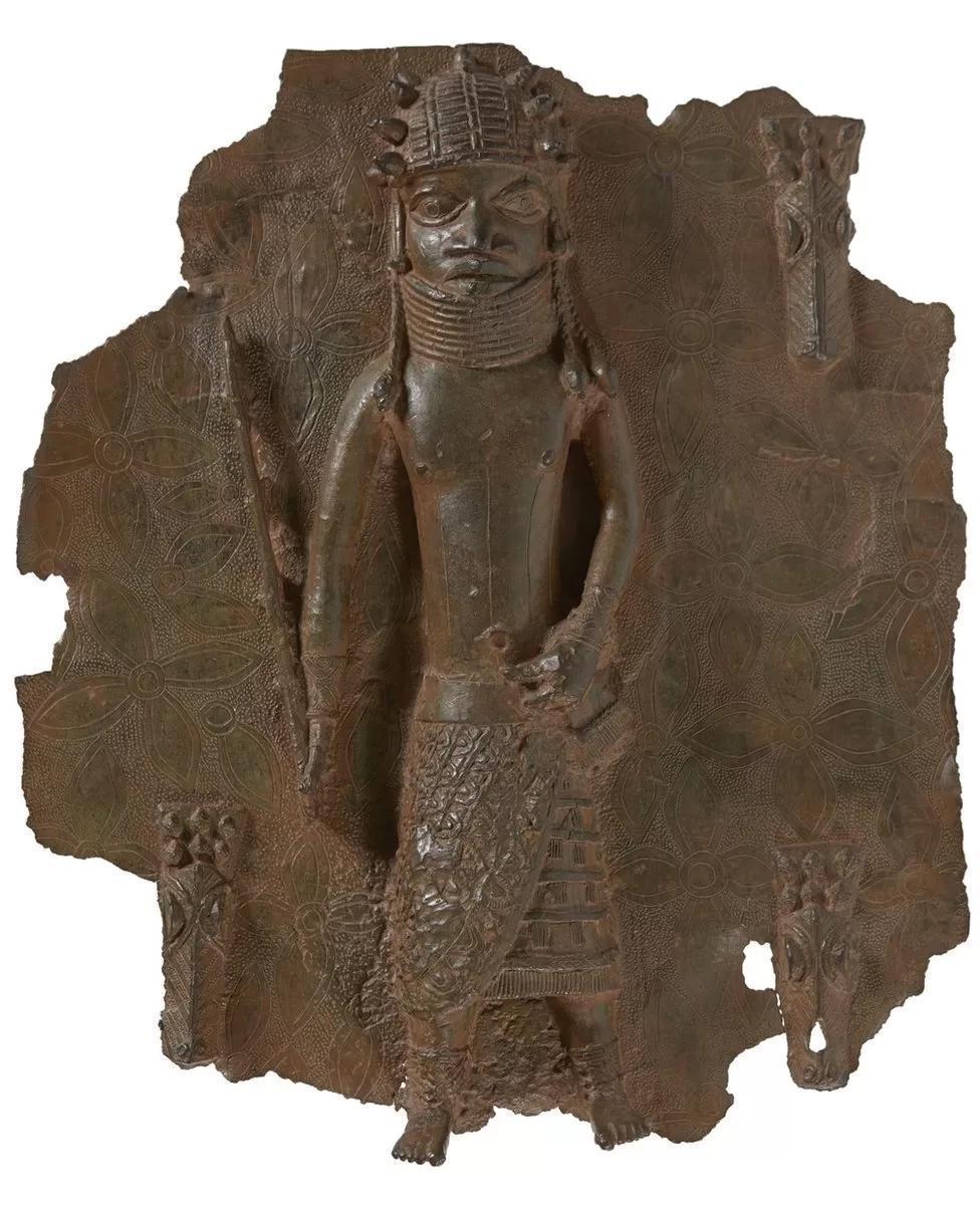 This plaque depicting Oba Orhogbua (circa 1550-1578) holding a staff representing authority and power is being returned