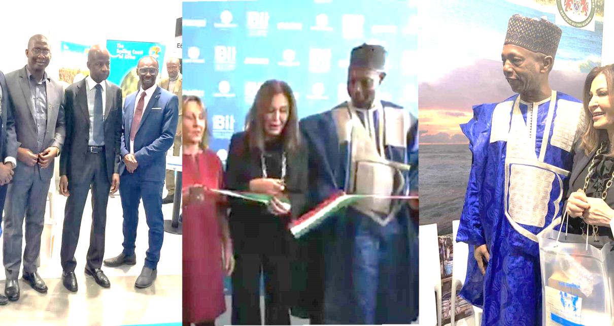 The Gambia delegation to this year’s International Tourism Fair (BIT) in Milan, Italy included the Permanent Secretary of the Ministry of Tourism and Culture, the Director General of the Gambia Tourism Board, the Director of Tourism Promotion based in Spain as well as the Counselor, Gambia Embassy in Spain and among other senior officials of both MoTC and GTBoard.