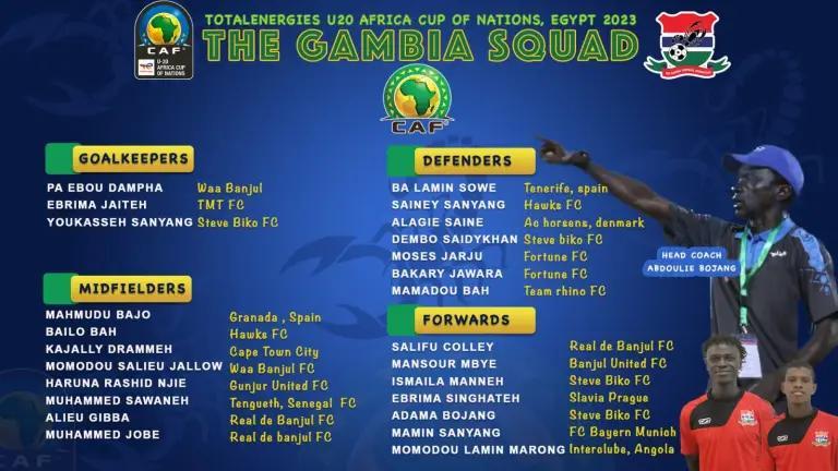 They include the best players in the domestic league and a few outstanding eligible foreign based players in the likes of forwards Kajally Drammeh (Cape Town City) and Mamin Sanyang (FC Bayern Munich) who will join the team in Elyot where the tournament opens on Sunday. However, the team will hold a camping in Morocco days before going to Eqypt.