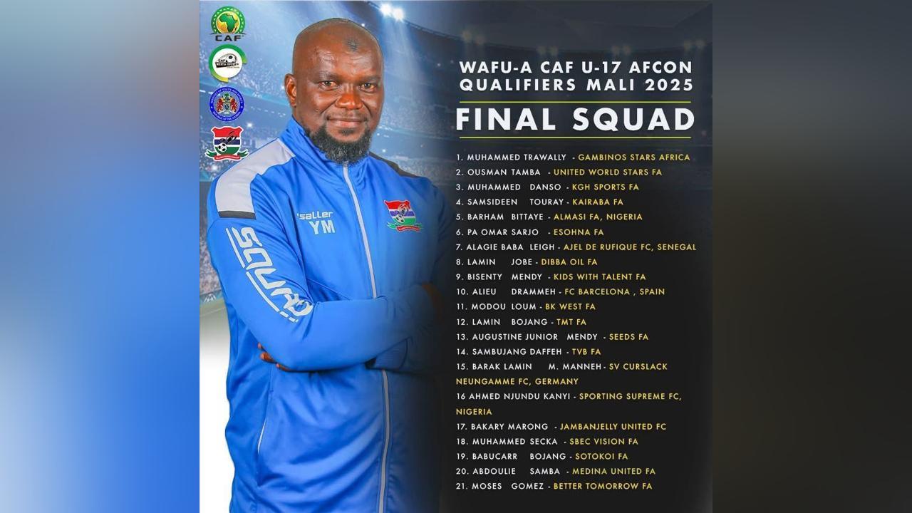Africa-Press – Gambia. The Gambia U-17 Head Coach Yahya Manneh has unveiled his 21-man squad for next month’s WAFU-A CAF TotalEnergies Africa Cup of Nations qualifiers, set to be hosted in Bamako, Mali, from 5th to 18th October 2025.
