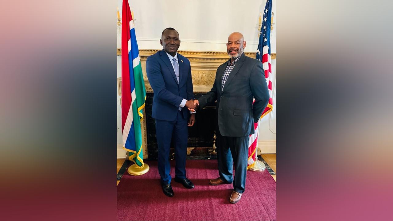 Africa-Press – Gambia. The Counsellor at the Embassy of the Republic of The Gambia to the United States of America, Mr. Ousman Fisco Njie, on Monday 13th March 2023 received Mr. Curtis Smith, a Partner of Kunta Kinteh Foundation in Washington, DC.