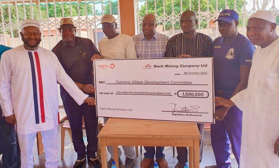 Africa-Press – Gambia. The GACH Mining Company on Sunday presented a cheque of D1.5 million to the Tujereng Village Development Committee.