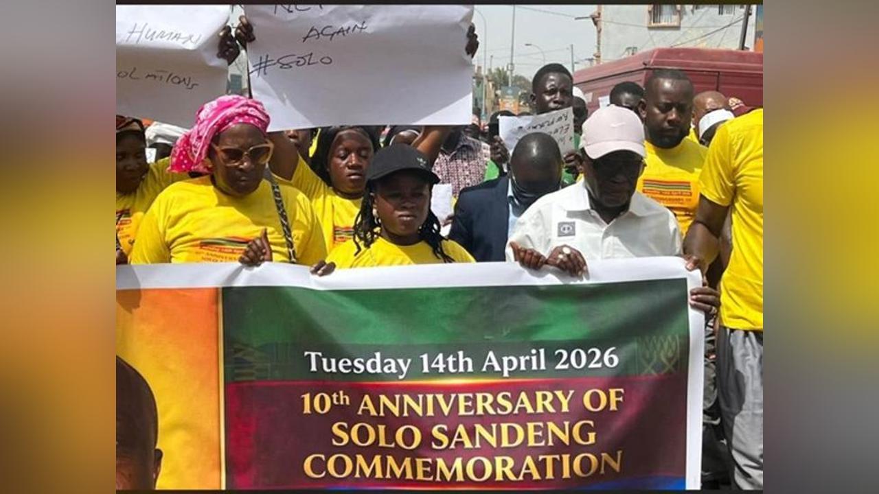 Africa-Press – Gambia. Gambians on Tuesday marched through parts of the capital to mark the 10th anniversary of the death of activist Ebrima Solo Sandeng, calling for justice, accountability, and reparations for victims of past human rights violations.
