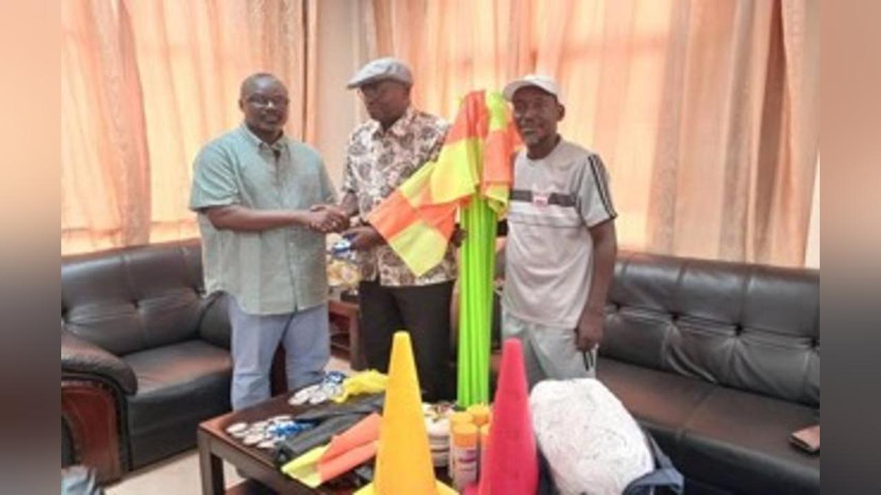 The materials include eight big cones,12 assistant referee flags, sets of goal post nets, touch line band, six goal post spray set of net, two sets of long cones, a set of gold, silver and bronze medals.
