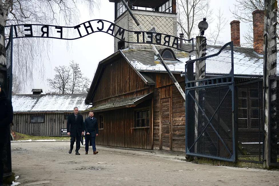 In Oswiecim, Poland, Second Gentleman of the US Douglas Emhoff (below, left) walked through the main gates of the former German Nazi concentration and extermination camp Auschwitz-Birkenau.