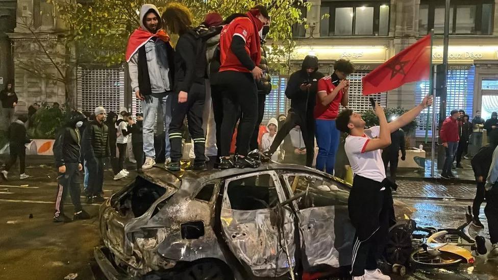In places, celebrations turned to street battles involving young Morocco fans and police.