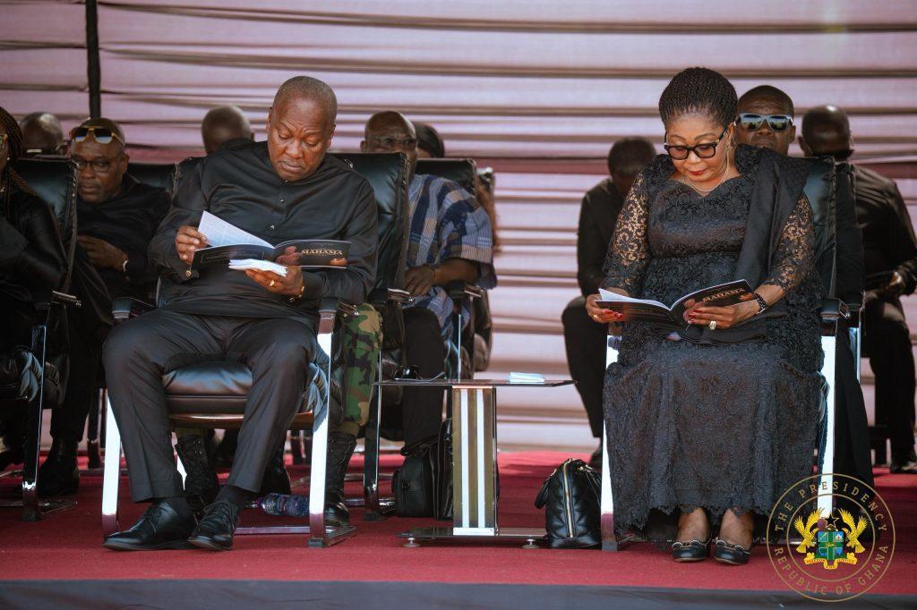 Africa-Press – Ghana. President John Dramani Mahama and his wife, First Lady Lordina on Saturday mourned with Dr Callistus Mahama, Executive Secretary to the President, at the funeral of his mother, Mrs Salomey Mahama, in Salaga, Savannah Region.