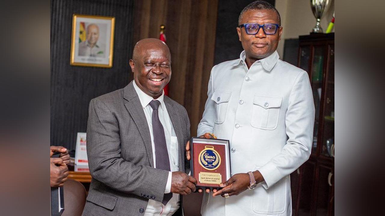 Africa-Press – Ghana. The leadership of the Sports Writers Association of Ghana (SWAG) has paid a high-powered courtesy call on the Minister for Sports and Recreation (MoSR), Mr. Kofi Iddie Adams, to deepen strategic collaboration and rally stronger institutional support for the growth of the sector.