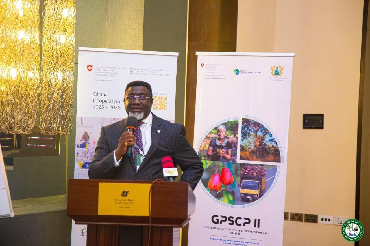 Other high-level participants included Ms Julian Ofori Karikari, Team Lead of GPSCP II, Mr Taylor Crabbe, NIRAS-GPSCP II Consultant, Dr Ashwini Sebastian, World Bank Team Lead for the Tree Crops Development Project, and Ms Magdalena Wüst, Deputy Head of Cooperation at the Swiss Embassy in Ghana, who spoke on behalf of the Swiss State Secretariat for Economic Affairs.