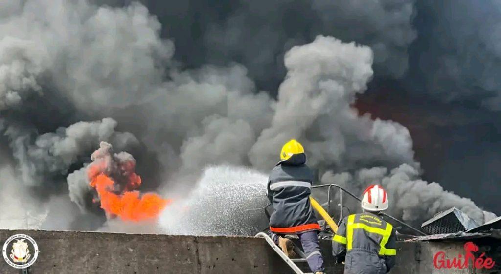 Africa-Press – Guinée. Conakry s’est réveillé dans la matinée de ce lundi 18 décembre 2023, avec un incendie de haute intensité au dépôt de carburant situé dans le centre d’affaires de Kaloum.
