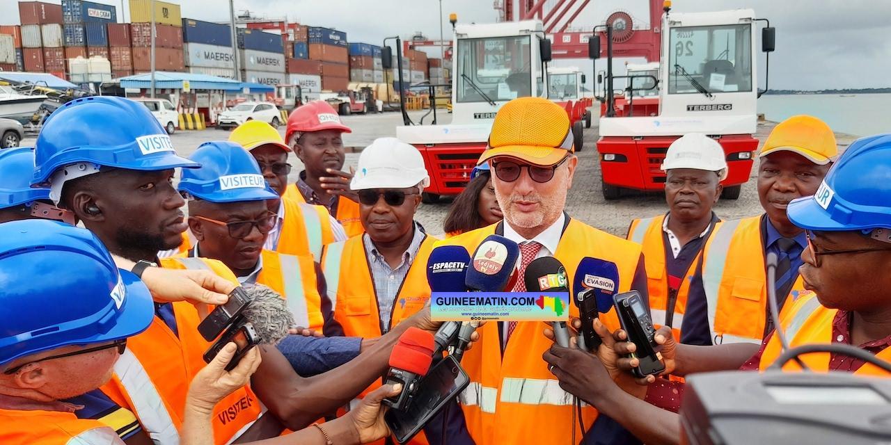 Africa-Press – Guinée. Conakry Terminal, filiale de Bolloré Ports, a été distingué cette année par la Banque mondiale. Le port conteneur de Conakry a été classé comme étant le plus performant en Afrique de l’Ouest. Une nouvelle accueillie avec beaucoup de joie par les responsables de l’entreprise, qui ont animé un point de presse de jeudi, 14 juillet 2022, pour parler de ce résultat honorable. Selon Emmanuel Masson, le directeur de Conakry Terminal, cette distinction est le fruit des efforts fournis au cours des dix dernières années au port de Conakry.