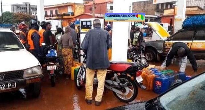 Parmi ceux qui font la queue devant l’une des stations-service, figure Mamadou Saliou Bah. Ce conducteur de taxi moto patiente ici dans l’espoir d’avoir le carburant au prix normal au lieu de débourser 20 000 francs pour acheter un litre d’essence au marché.
