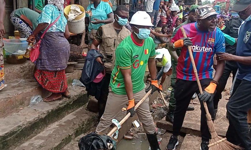 Africa-Press – Guinée. Dans l’optique d’appuyer les opérations d’assainissement initiées par le président de la transition, le Colonel Mamadi Doumbouya, Docteur Dansa Kourouma, s’est lui aussi rendu sur le terrain, dans la préfecture de Coyah ce dimanche 17 juillet, pour procéder à l’assainissement du grand marché avec toute son équipe.