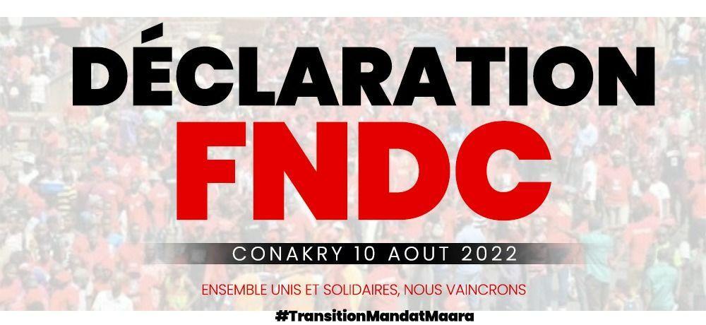 Dans cette lutte contre l’oppression et la tyrannie, le FNDC lance un appel à tous, aux autorités morales et religieuses, aux intellectuels et écrivains, aux personnes responsables et consciencieuses du CNT et du gouvernement, à tous les citoyens et amis de la Guinée : faisons des prochaines manifestations le point de départ d’un redressement de la transition afin que triomphent la démocratie, la justice et la liberté.