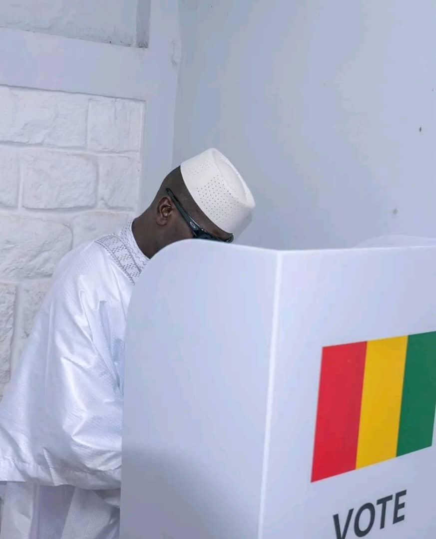 Il a glissé son bulletin dans l’urne au bureau situé dans l’enceinte du centre de santé de Boulbinet, dans la commune de Kaloum, en compagnie de son épouse.