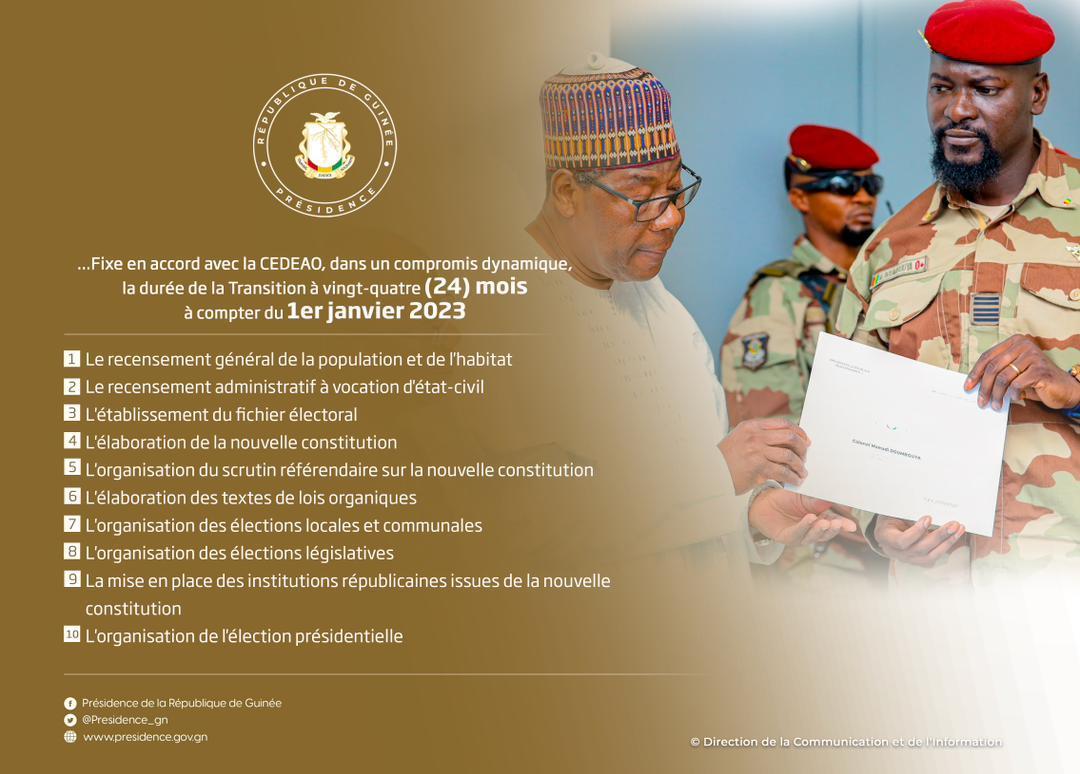 Ainsi, la Transition ouverte le 5 septembre 2021, entrera à partir du mois de janvier prochain dans une nouvelle phase du processus de rectification institutionnelle et de refondation de l’État. Le décompte de la mise en œuvre des 10 points du chronogramme sera ainsi lancé pour un retour programmé à l’ordre constitutionnel. Un comité de suivi et évaluation s’assurera du respect de la feuille de route.