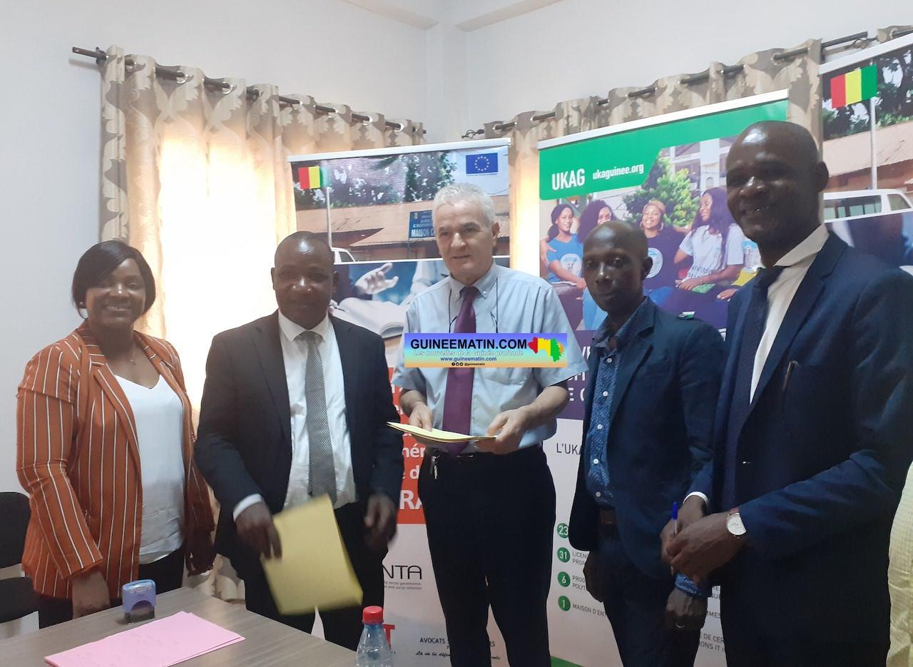 Globalement, il vise à appuyer les organisations de la société civile (OGDH et MDT), en matière de consolidation de l’État droit, à travers le renforcement de l’accès à la justice des personnes vulnérables et la lutte contre l’impunité en République de Guinée. Et l’un des objectifs de ce projet est de susciter l’intérêt des jeunes étudiants aux questions de défense des droits de l’homme, en leur offrant des stages pratiques au sein des cliniques juridiques qui existent en Guinée. C’est dans ce cadre donc que l’université Kofi Annan de Guinée a été choisie pour signer une convention de partenariat avec l’ONG MDT.