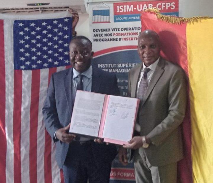 « Je crois que l’enseignement à distance est le socle du développement du futur », a déclaré Guy DJOKEN, le président de la Fondation américaine pour le développement économique et social (FADES), lors de la signature de l’accord de partenariat avec le Groupe ISIM-UAB. « Je remercie mon point focal en Guinée, M. Baldé, qui travaille depuis un certain temps avec le Groupe ISIM-UAB pour mettre sur pied une structure qui va, à l’avenir, permettre de développer des compétences sur le plan national et sous-régional.