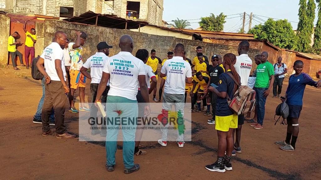 Africa-Press – Guinée. Dans le cadre de la promotion de la paix et le développement local dans la commune de Dixinn, l’association « DES PAROLES ET DES ACTES » a organisé un tournoi de football dans le quartier Hafia. Ce mercredi 7 décembre 2022, les couleurs de l’événement ont été lancées à travers une forte mobilisation des jeunes venus des différents quartiers de la commune de Dixinn. Un tournoi révélateur de l’entente et de la solidarité caractérisant les relations entre les habitants de ces quartiers.
