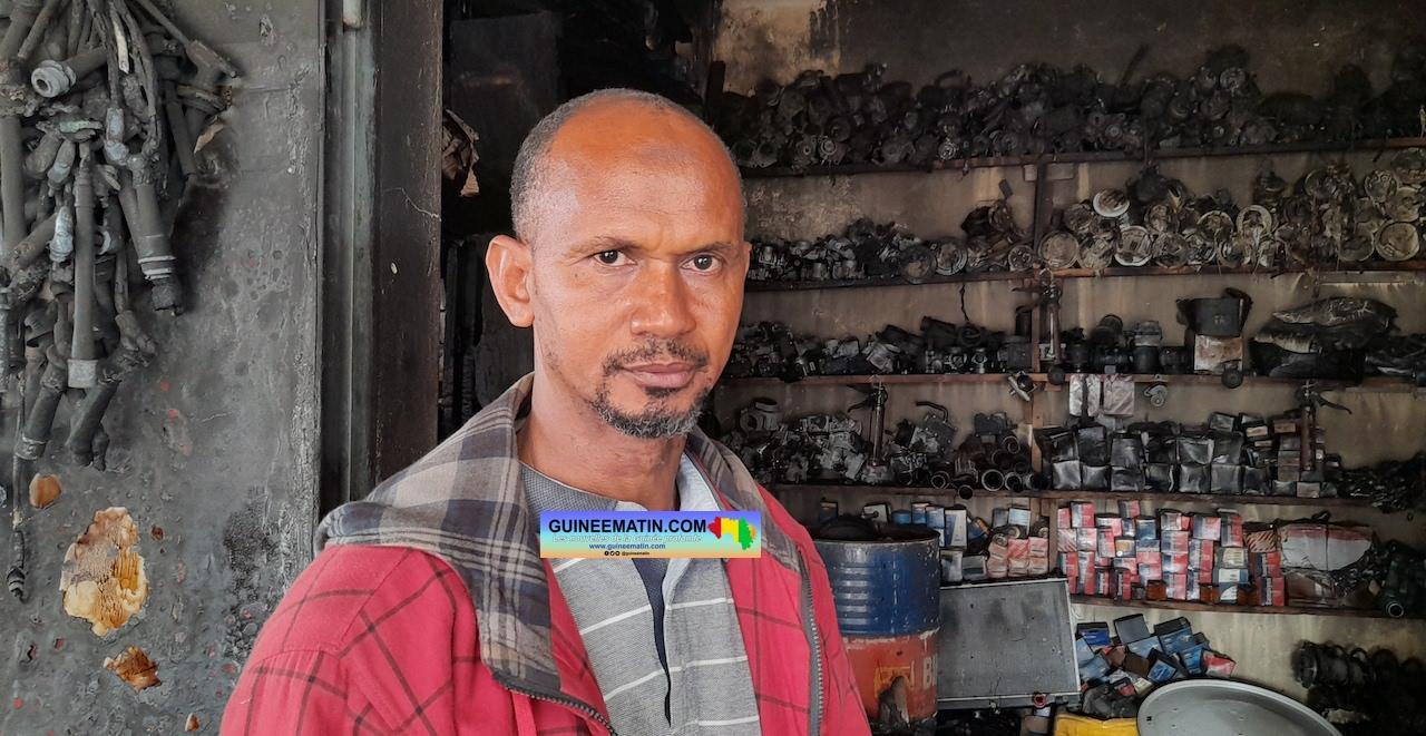 Choqué par ce qui lui est arrivé, Ibrahima Baldé, mécanicien et propriétaire des deux magasins raconte comment il a été informé de ce qui a été comme coup de massue sur sa tête.