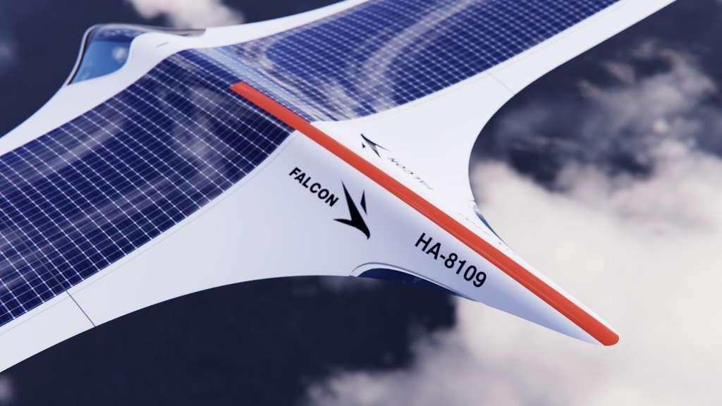 En aviation, on a coutume de dire qu’un avion aux lignes harmonieuses est un avion qui vole bien et justement, le Falcon Solar présenté par la société hongroise Lasko Design est séduisant. Avec sa grande voilure, il a l’allure d’un aéronef futuriste ou d’un oiseau de proie, et il fonctionne à l’aide de l’énergie solaire. S’il ne s’agit que d’un concept, les vues d’artiste de l’aéronef montrent une grande aile dénuée d’éléments mobiles et un fuselage dont la queue élancée est exempte de dérive et d’empennage. L’effet « ailes de rapace » est accentué par la forme du nez de l’appareil et l’incurvation des ailes. Lasko Design ne dissimule d’ailleurs pas ses inspirations biomimétiques.
