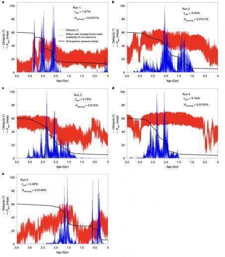 En parallèle, la planète subit régulièrement des changements dans l’inclinaison de sa rotation, ce qui amène des variations climatiques importantes à la surface de la planète. Mars aurait donc connu des courtes périodes d’eau liquide, suivies de périodes désertiques de 100 millions d’années. “Nos modèles suggèrent que les périodes d’habitabilité sur Mars ont été l’exception plutôt que la règle”, indique dans un communiqué de presse Edwin Kite, co-auteur de l’étude et planétologue à l’université de Chicago.