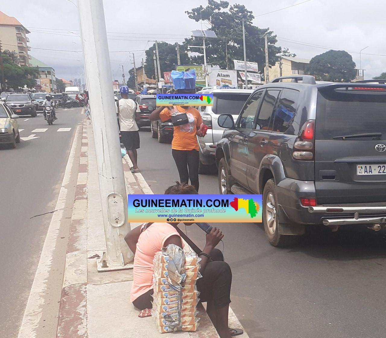 Dans la commune de Dixinn on y découvre une véritable vente à la sauvette. Ces gamins profitent des embouteillages pour serpenter entre les véhicules et proposer leurs articles aux usagers. Mais, avec l’idée de se faire un peu de sous, les risques d’accident liés à cette pratique sont vite écartés des pensées. Layeba Sacko, élève en 10ème année, assure qu’il peut gagner plus de 100 000 francs guinéens par jour avec la vente de cotons-tiges et de pinces.