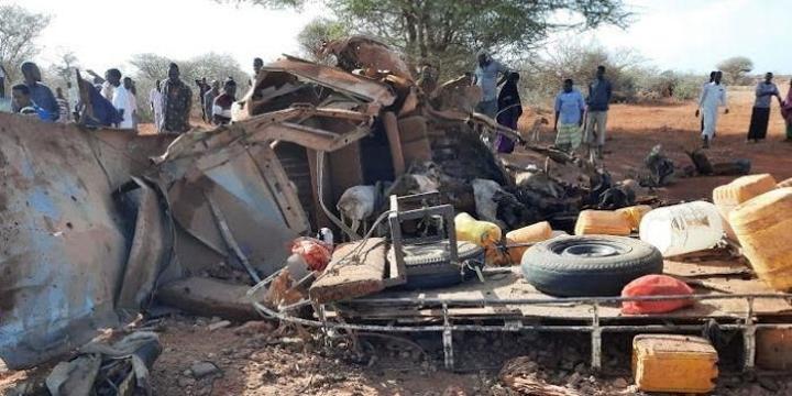 According to police, the four were ferrying foodstuffs when they hit the explosive approximately 14 kilometres west of Wajir Police Station at Erga area.