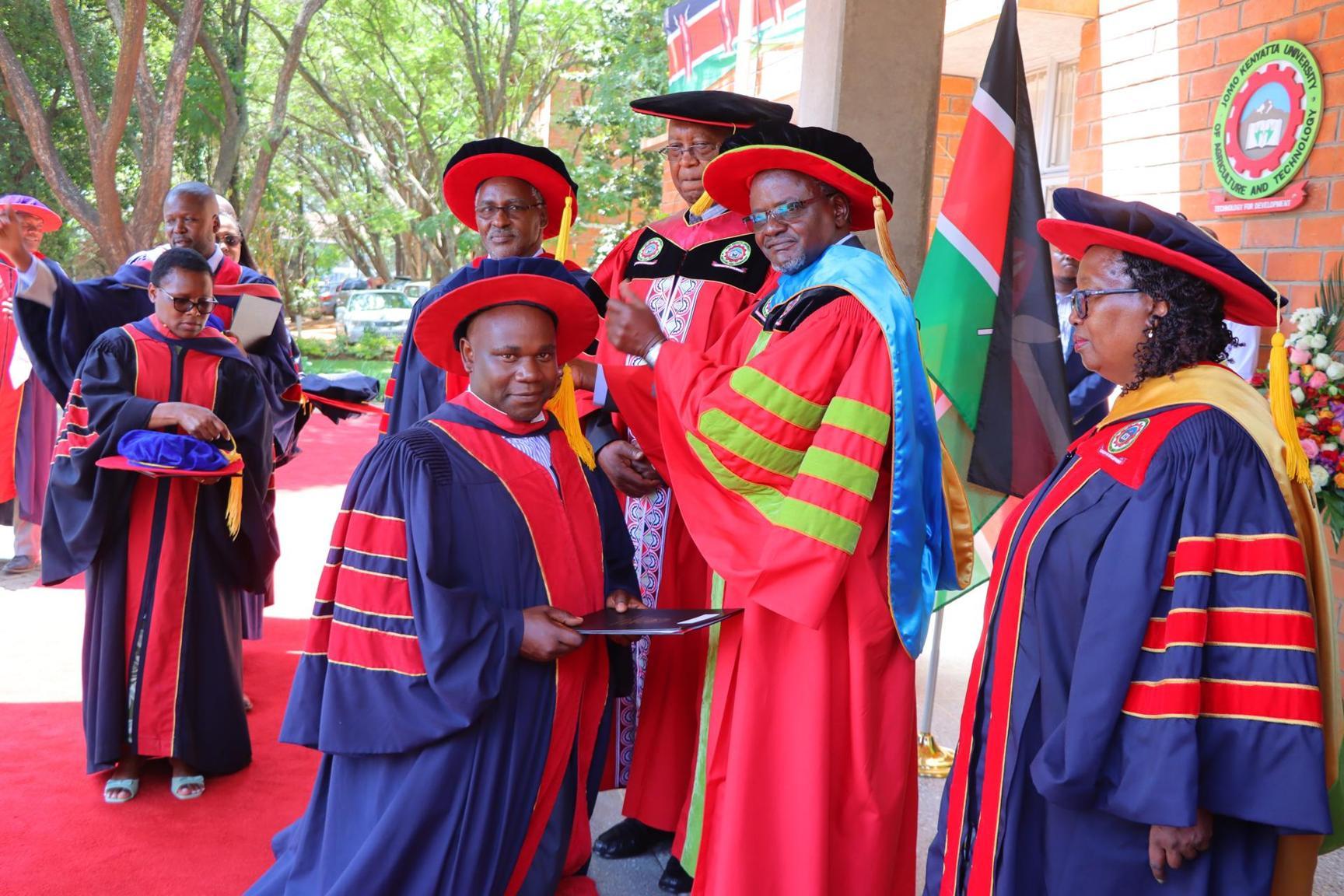 Africa-Press – Kenya. Jomo Kenyatta University of Agriculture and Technology (JKUAT) and the Pan African University Institute for Basic Sciences, Technology and Innovation (PAUSTI) today held a historic joint graduation ceremony.