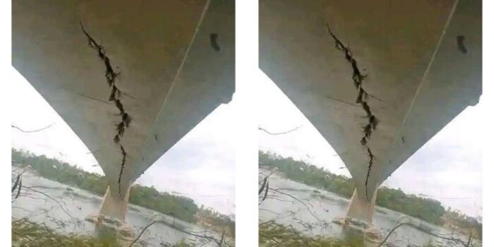 The image circulating on social media shows what looks like a bridge, in a state of disrepair. Large, deep cracks and exposed reinforcements are visible on the bridge’s supporting structure. The damage appears severe, which seems to raise significant safety concerns.