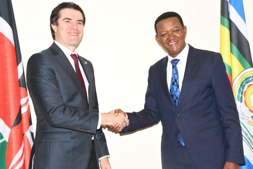 Africa-Press – Kenya. Foreign and Diaspora Affairs CS Alfred Mutua on Monday held a meeting with Australian Assistant Minister for Foreign Affairs Tim Watts. The talks, held at Mutua’s office at Harambee Avenue, focused on the broad spectrum of issues that underpinned Kenya-Australia Bilateral Relations.