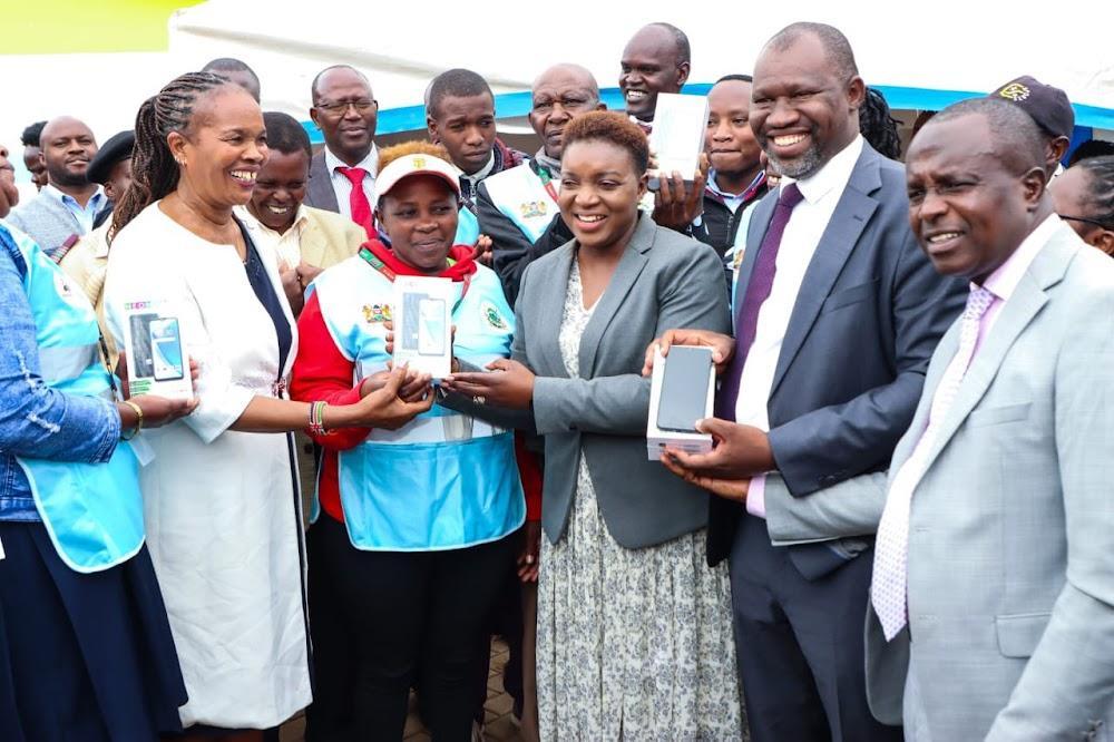On Tuesday, she distributed more than 2,000 locally assembled and customised smartphones to CHPs in Nyandarua and Laikipia counties.