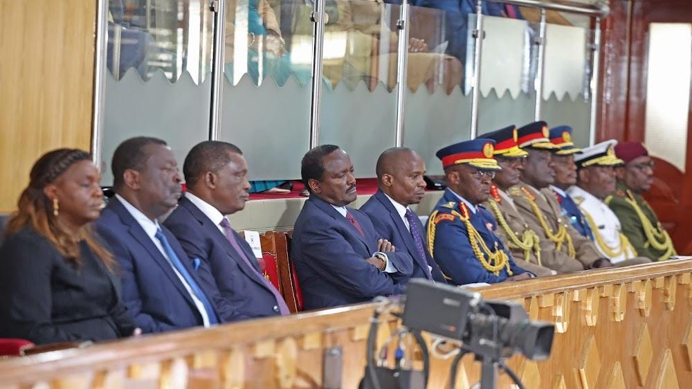 Odinga’s seat was placed between Wiper party leader Kalonzo Musyoka and Interior Cabinet Secretary Kithure Kindiki.