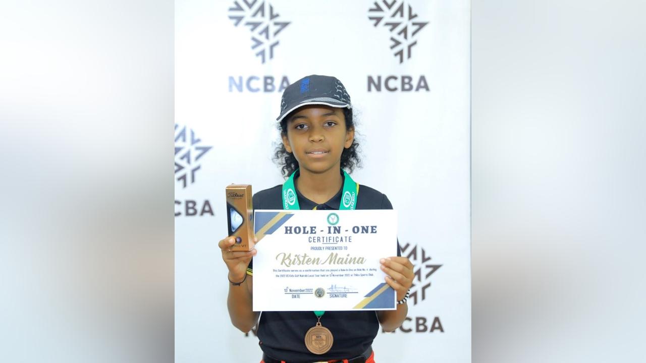 The best score of the day was played by Royal Nairobi’s Mwathi Gicheru who shot a wonderful 1 under par 72, winning in the boys’ 11-years category. The 12-year-old Kristen Maina had a hole-in-one in the par 3 hole 4.
