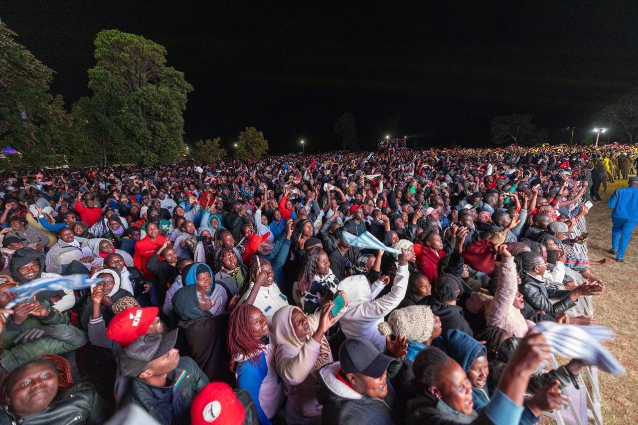 Africa-Press – Kenya. President William Ruto, on Wednesday, December 31, 2025, ushered in the new year in Eldoret at the Pamoja Concert, Eldoret Sports Club. President Ruto was accompanied by the First Lady Rachel Ruto, Deputy President Kithure Kindiki, among other leaders.