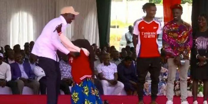 President William Ruto pledged additional support to a woman entrepreneur during a Nyota Fund distribution event at Gusii Stadium in Kisii County after the woman fell to her knees pleading for help.