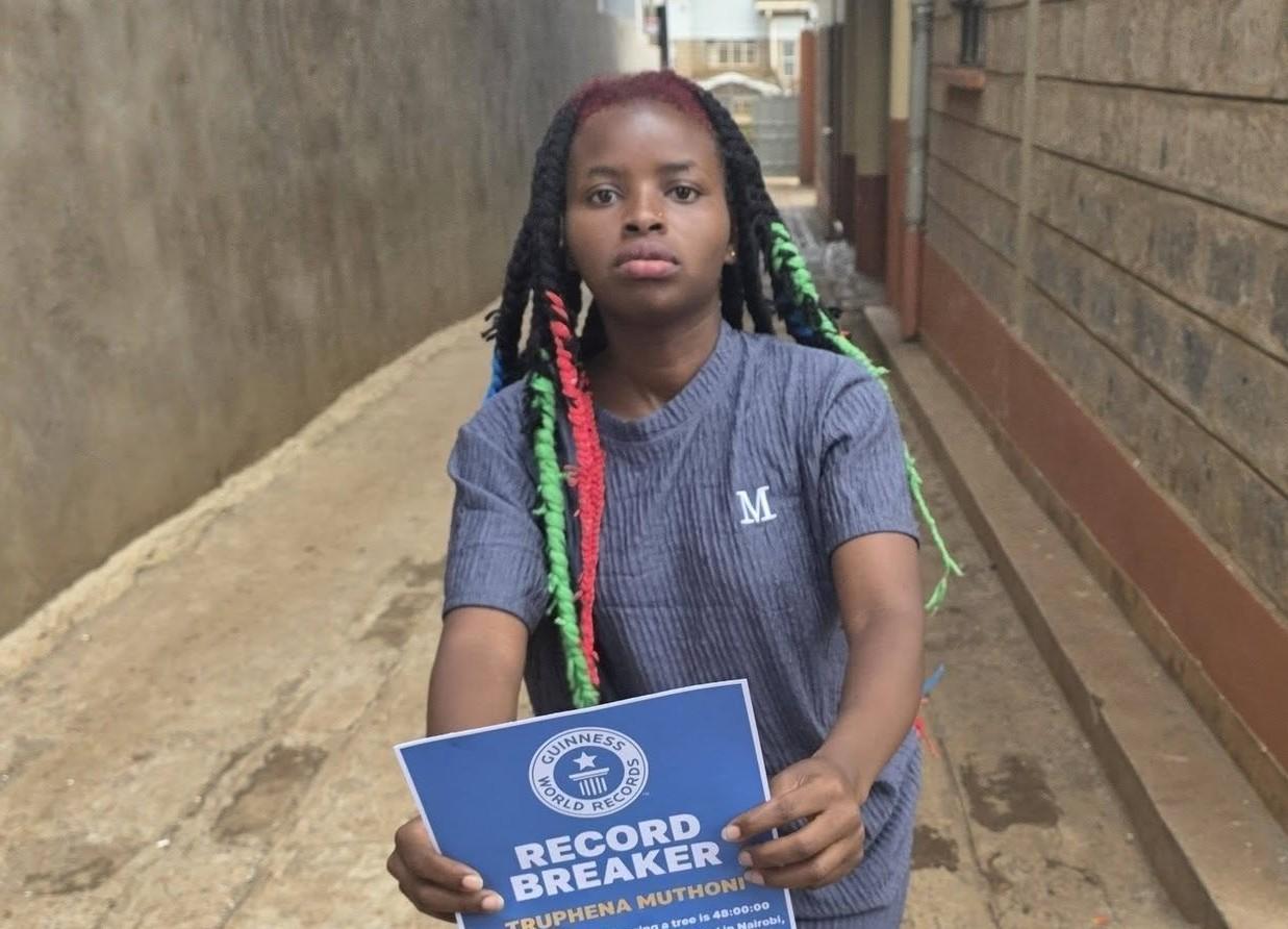 Africa-Press – Kenya. Truphena Muthoni has officially received her badge from Guinness World Records, formally recognising her record-breaking endurance feat of hugging a tree continuously for 48 hours.